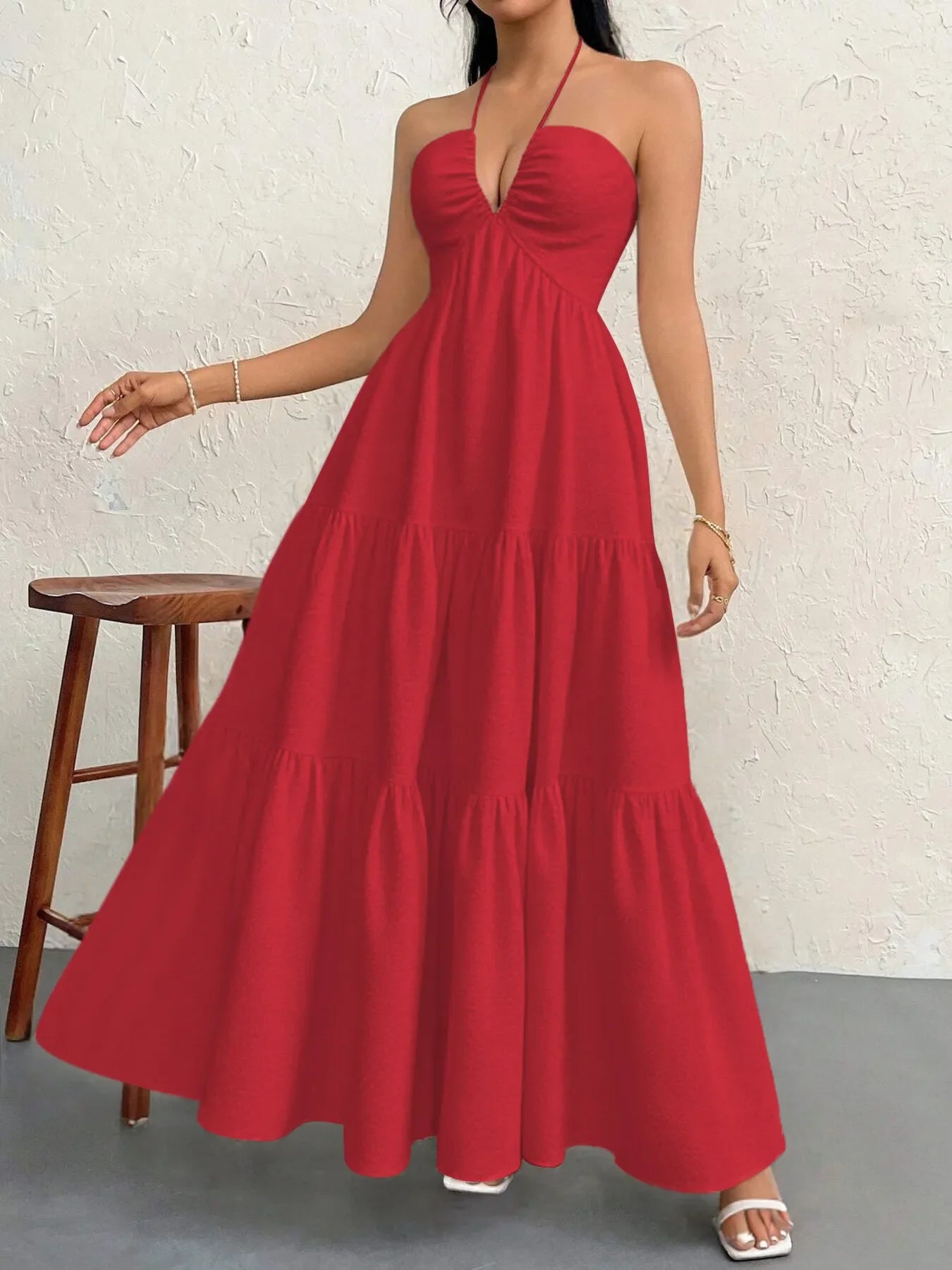 Halter Neck Tiered Maxi Dress