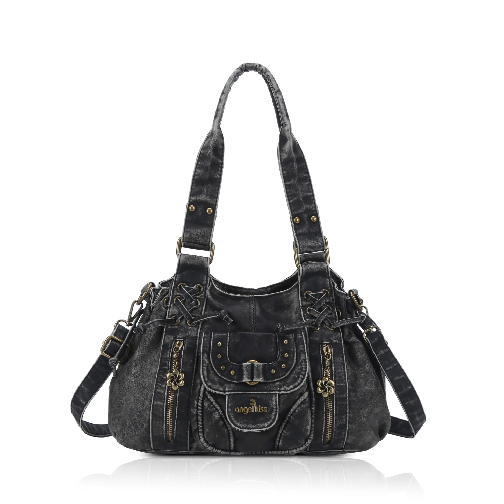 Vintage Multi-Pocket Satchel & Crossbody Bag