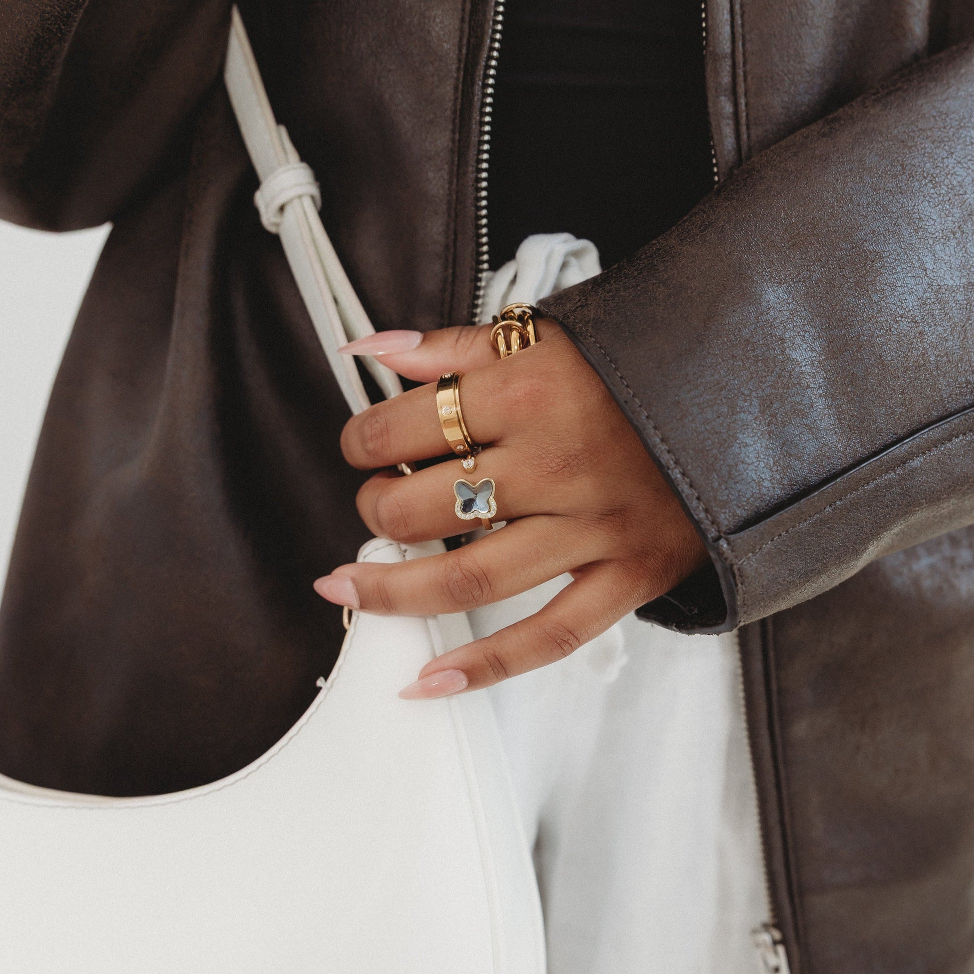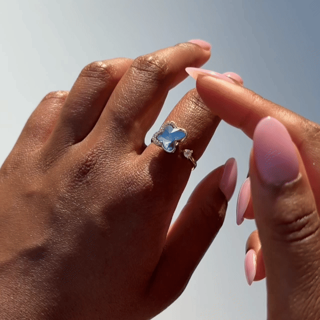 Let your mind wander without the worry with the Wander Spinner Anxi Ring. Featuring a bold butterfly centerpiece with sparkling accents, it offers a smooth spinning motion to keep your hands busy and your mind at ease. A statement piece that blends meaning with beauty, it’s a reminder to stay grounded while embracing freedom and change.